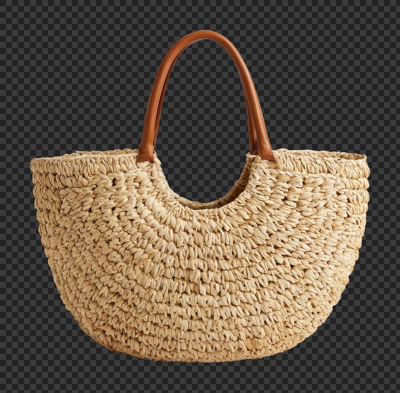 PNG Stylish woven straw handbag. https://www.rawpixel.com/image/25630773/png-stylish-woven-straw-handbagView license