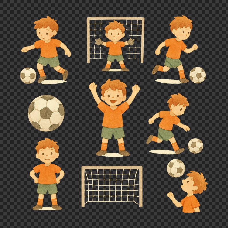PNG Cute soccer-themed children's illustration. https://www.rawpixel.com/image/18675844/png-cute-soccer-themed-childrens-illustrationView license