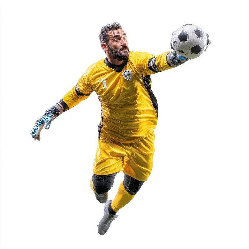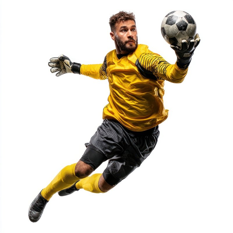 PNG Goalkeeper in mid-air ball soccer sports. https://www.rawpixel.com/image/15559680/png-goalkeeper-mid-air-ball-soccer-sportsView license