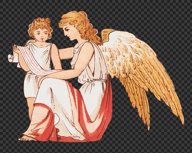 PNG Angel with her son, vintage illustration, transparent background. Remixed by rawpixel. https://www.rawpixel.com/image/10168947/png-face-artView license