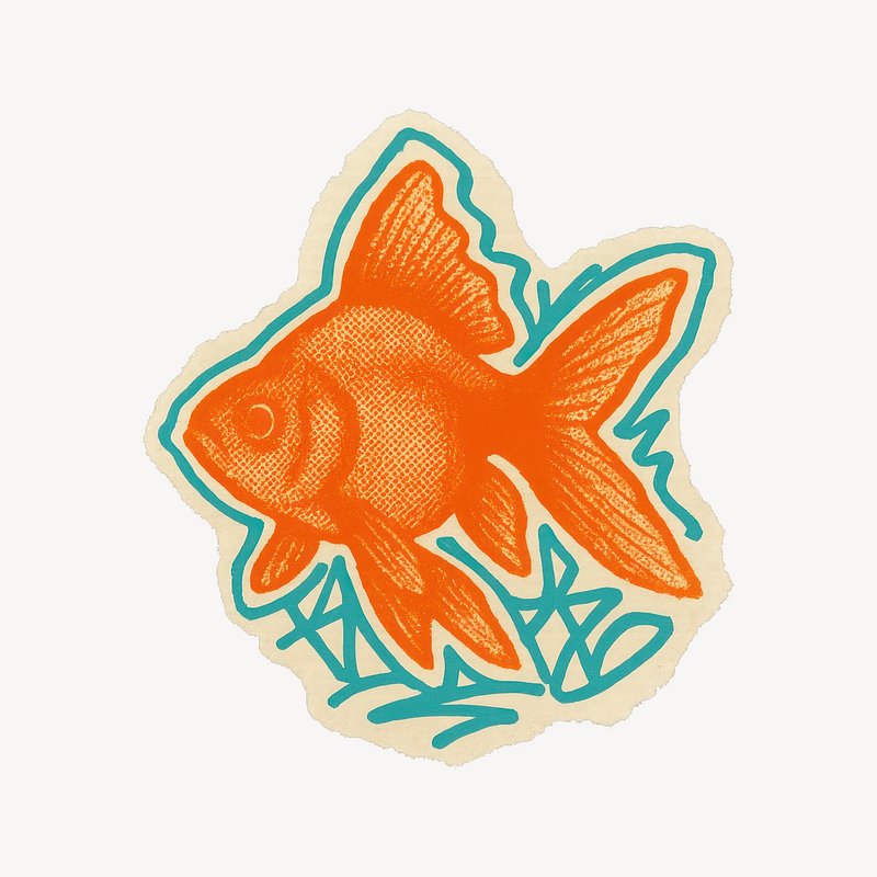 Vibrant goldfish sticker art. https://www.rawpixel.com/image/24652655/vibrant-goldfish-sticker-artView license