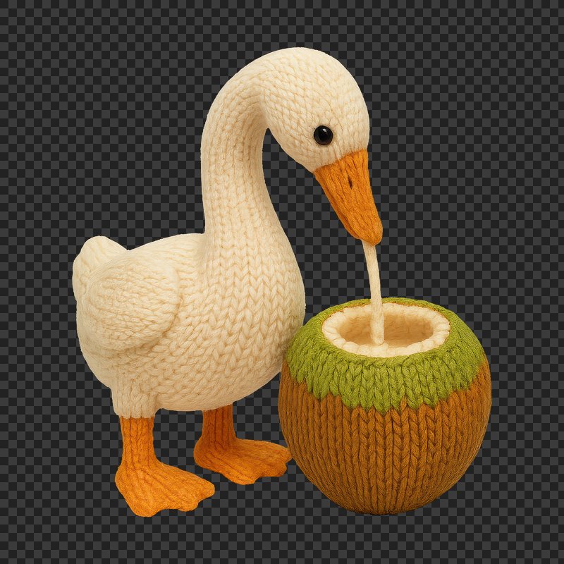 PNG Knitted duck sipping coconut. https://www.rawpixel.com/image/24478608/png-knitted-duck-sipping-coconutView license