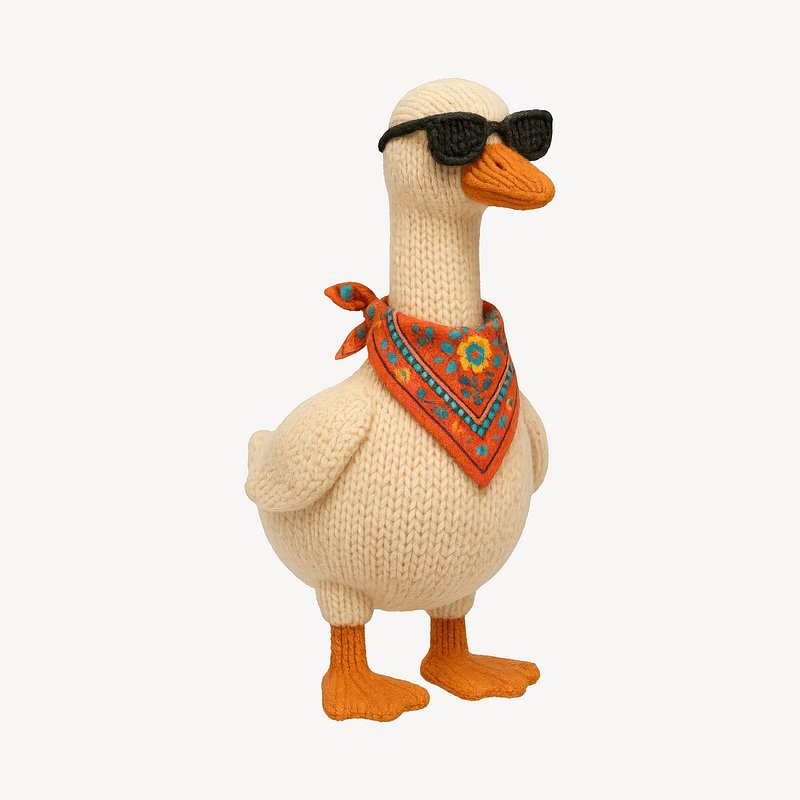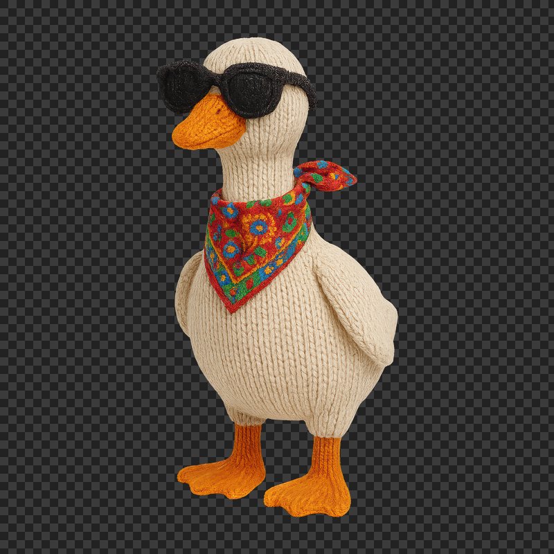 PNG Stylish knitted duck with sunglasses. https://www.rawpixel.com/image/24480155/png-stylish-knitted-duck-with-sunglassesView license