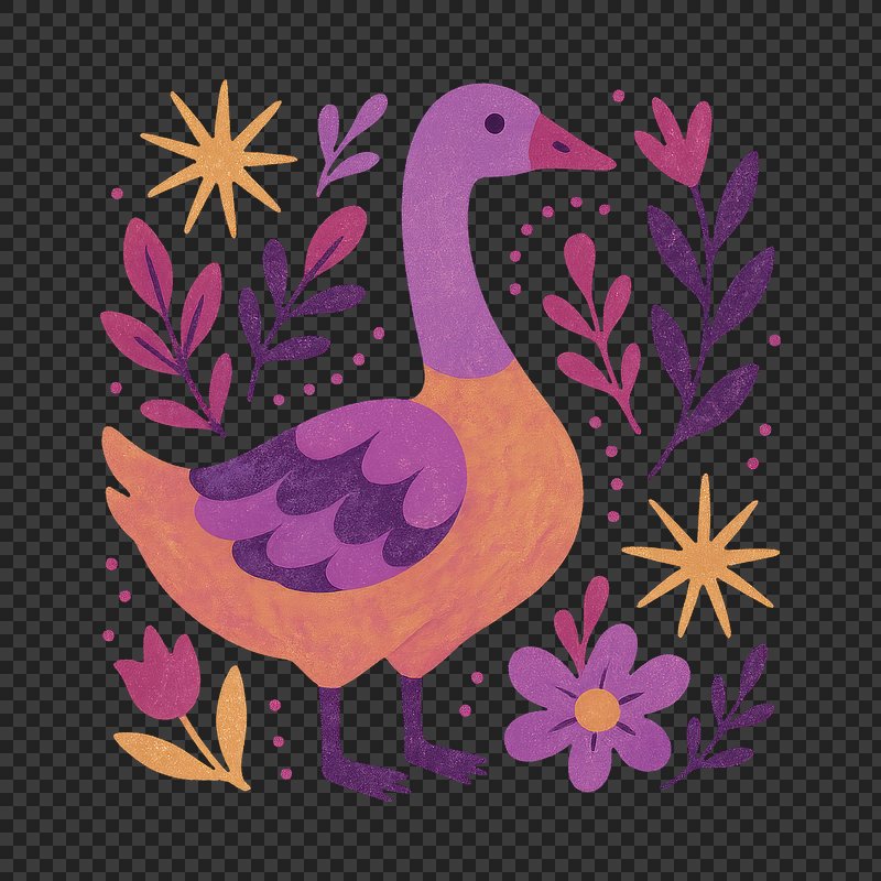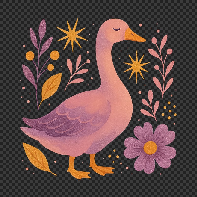 PNG Whimsical goose with floral elements. https://www.rawpixel.com/image/24555878/png-whimsical-goose-with-floral-elementsView license