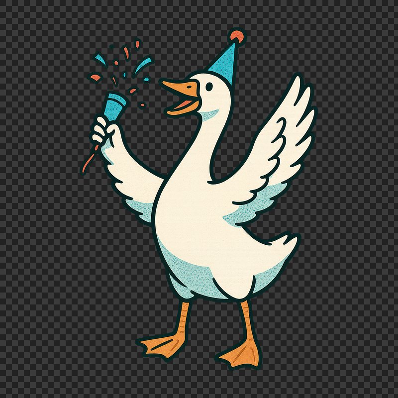 PNG Joyful duck celebrating party https://www.rawpixel.com/image/24679283/png-joyful-duck-celebrating-partyView license