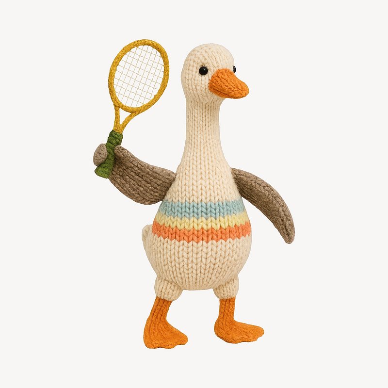 Knitted duck playing tennis. https://www.rawpixel.com/image/24660757/knitted-duck-playing-tennisView license