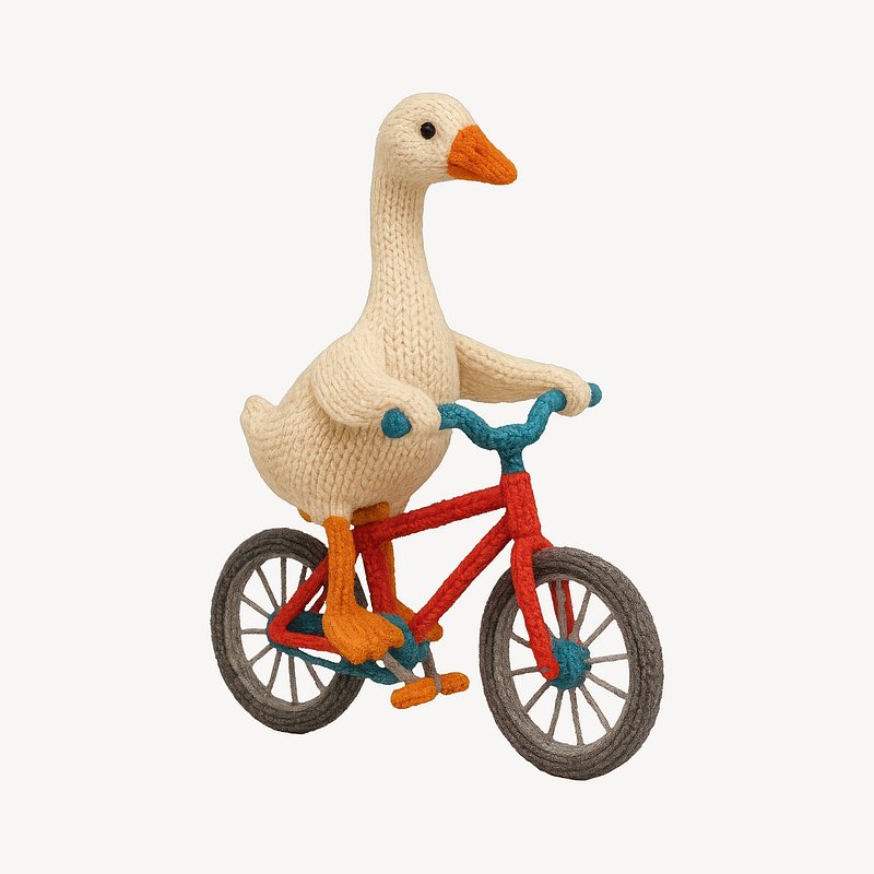 Knitted duck riding bicycle https://www.rawpixel.com/image/24606707/knitted-duck-riding-bicycleView license