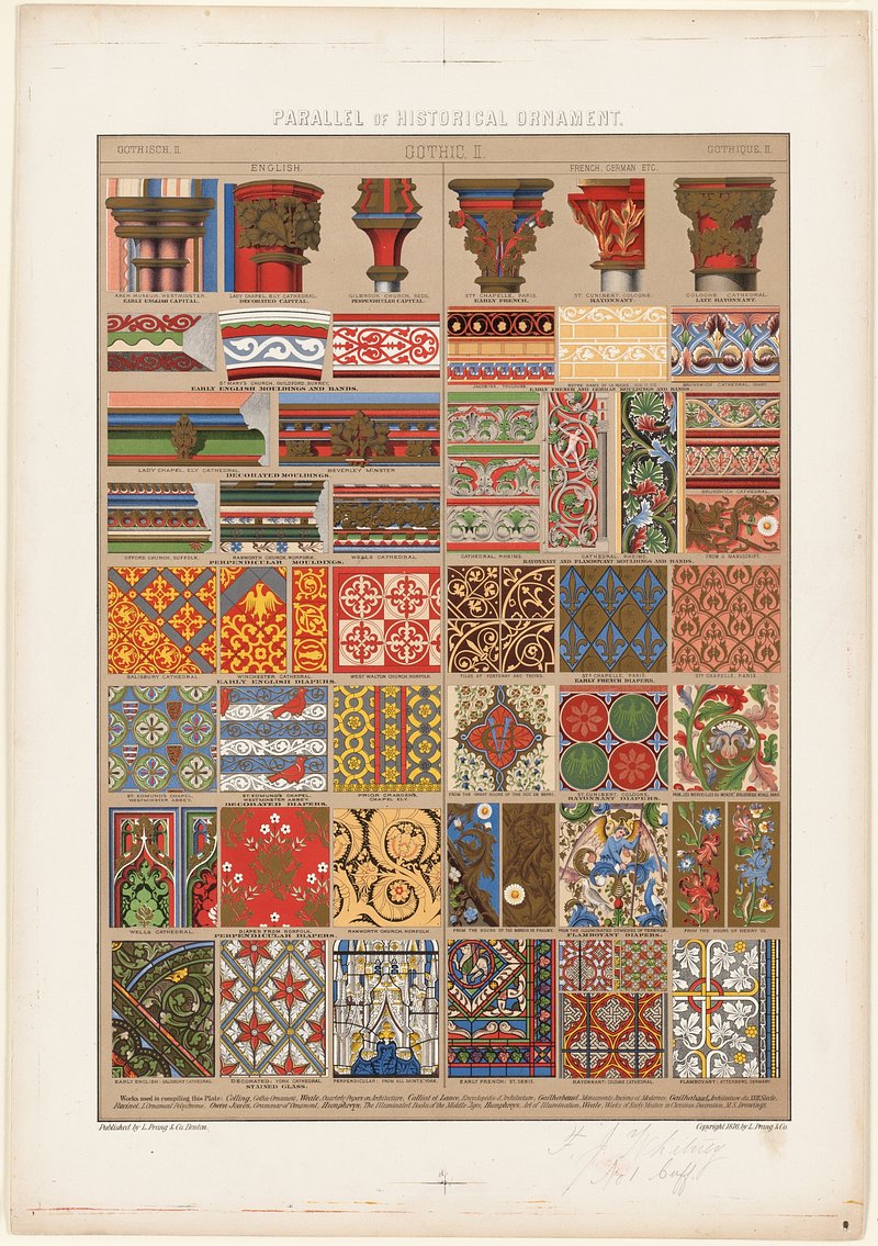 Celtic, Romanesque and Gothic architectural and decorative elements in buildings in France. Coloured engraving by Langevin… https://www.rawpixel.com/image/13958054/image-person-art-patternFree Image from public domain license