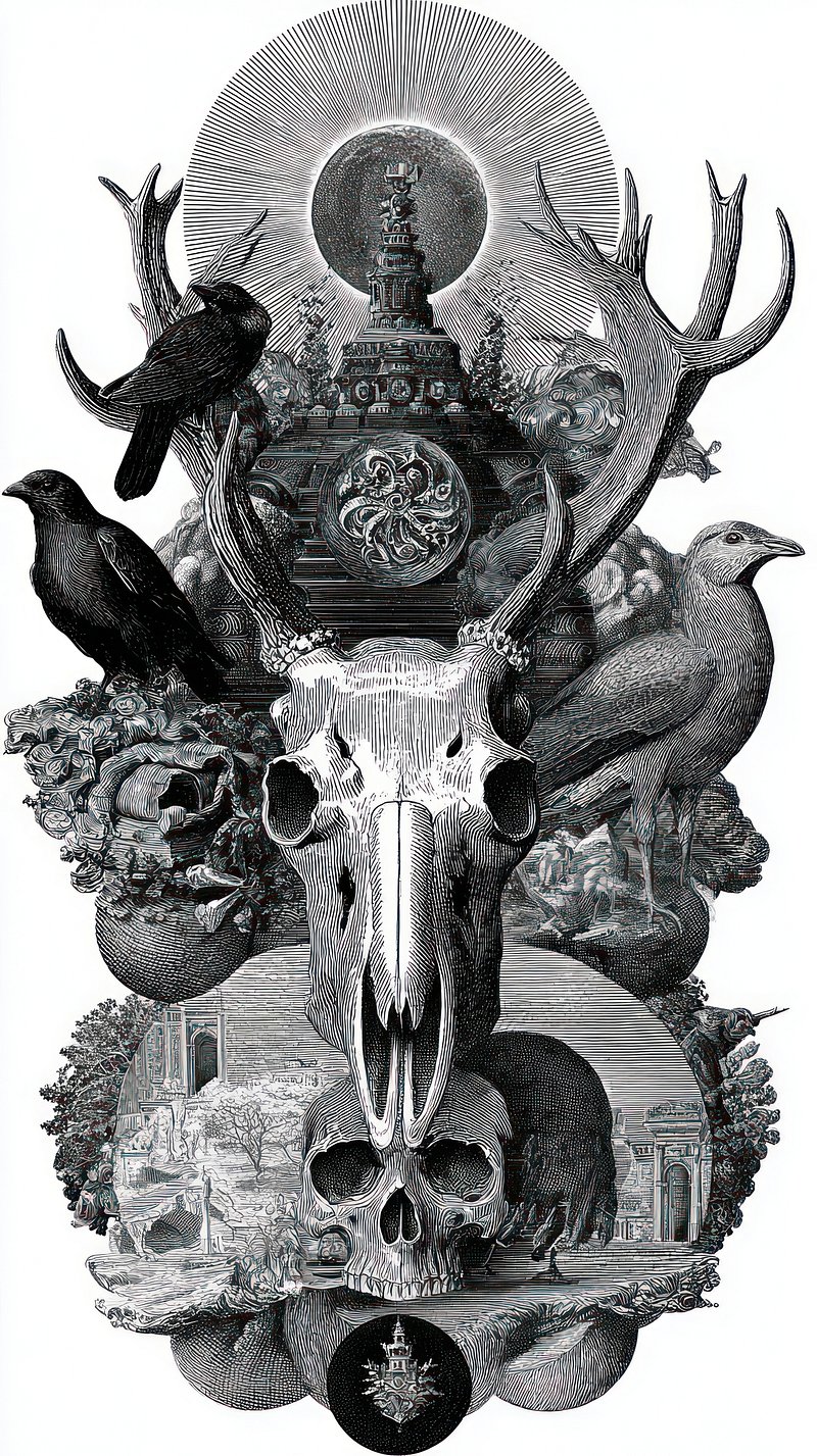 Surreal wildlife skull illustration https://www.rawpixel.com/image/19115041/surreal-wildlife-skull-illustrationView license