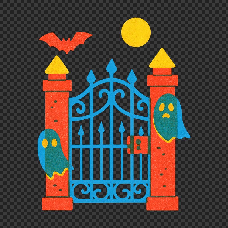 PNG Spooky gate with ghosts https://www.rawpixel.com/image/21804484/png-spooky-gate-with-ghostsView license