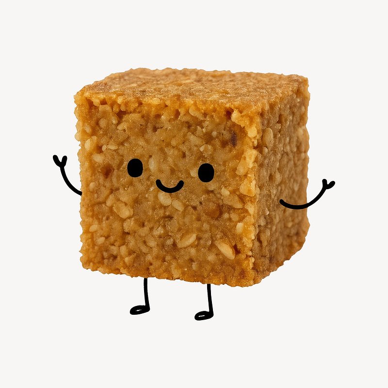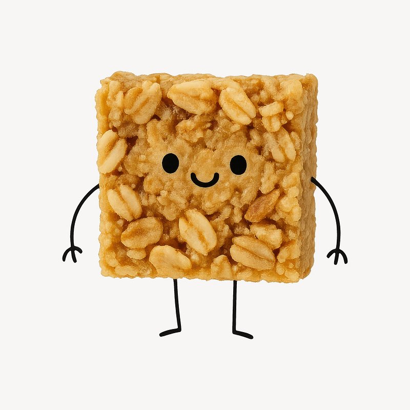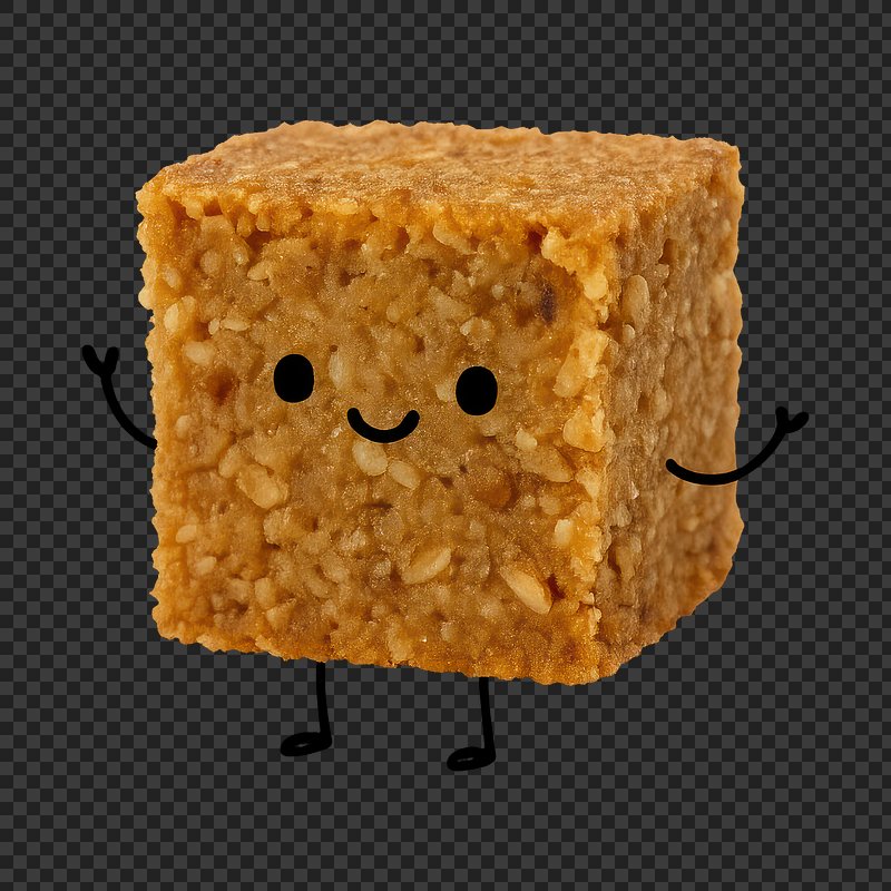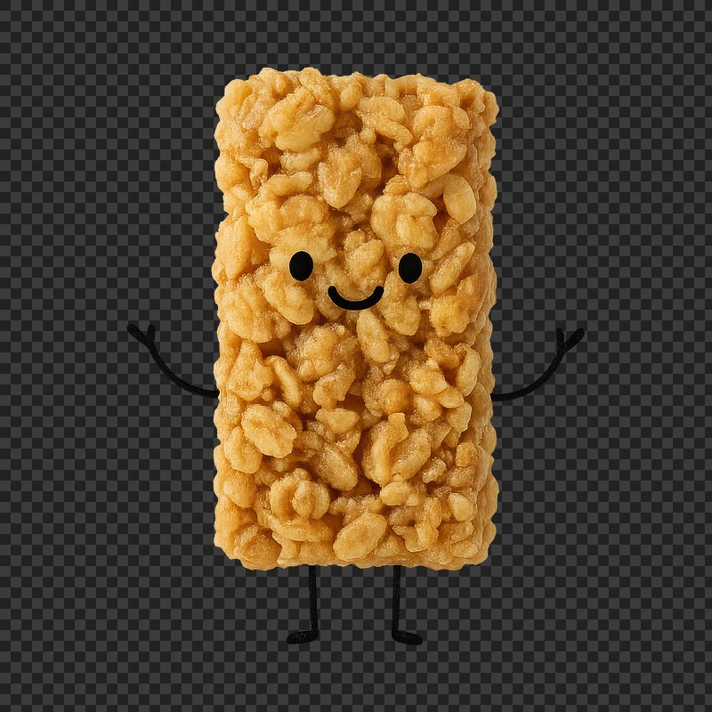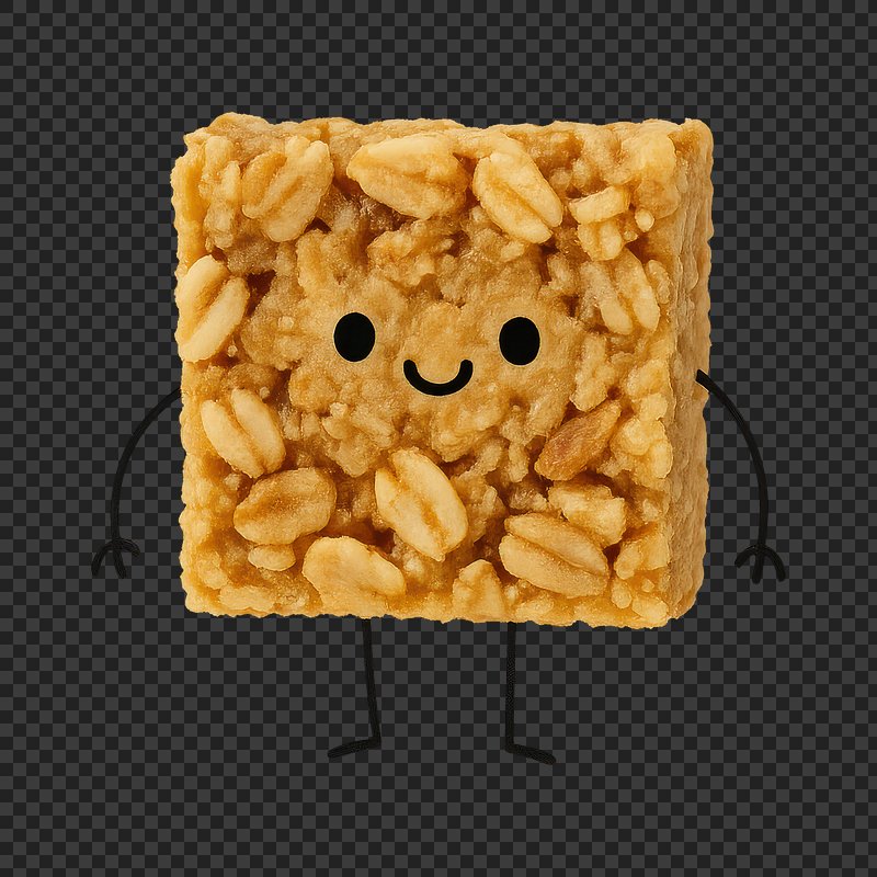 Cute smiling granola bar character. https://www.rawpixel.com/image/21866294/cute-smiling-granola-bar-characterView license