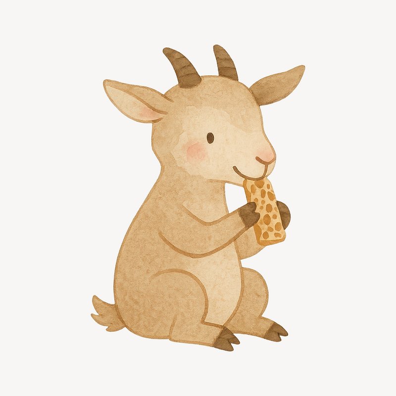 Cute goat eating snack illustration. https://www.rawpixel.com/image/19454061/cute-goat-eating-snack-illustrationView license
