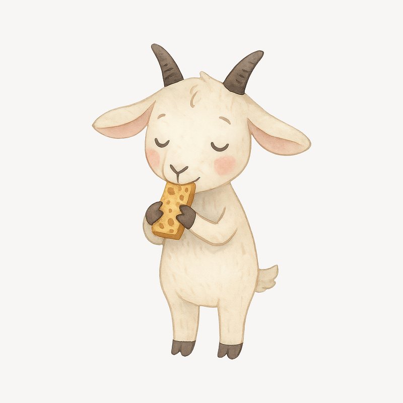 Cute goat eating cookie illustration. https://www.rawpixel.com/image/19451683/cute-goat-eating-cookie-illustrationView license