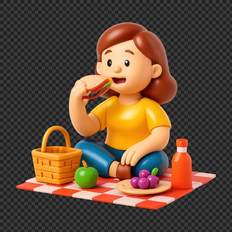 PNG Picnic scene with cartoon character. https://www.rawpixel.com/image/19400645/png-picnic-scene-with-cartoon-characterView license