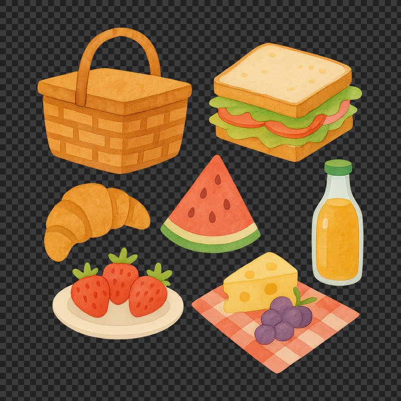 PNG Colorful picnic food illustration. https://www.rawpixel.com/image/18317605/png-colorful-picnic-food-illustrationView license