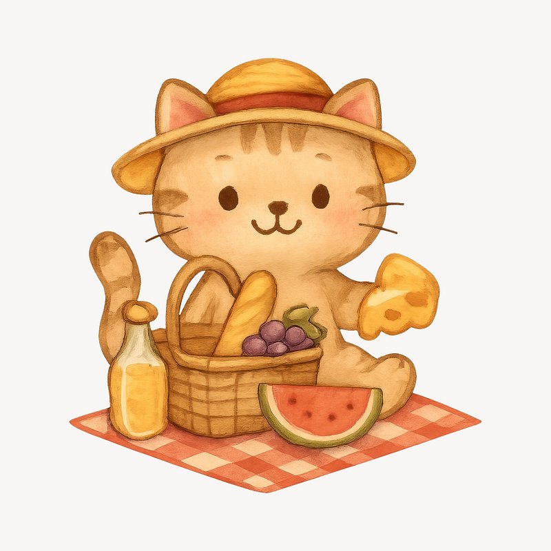 Cute picnic cat illustration https://www.rawpixel.com/image/19013685/cute-picnic-cat-illustrationView license