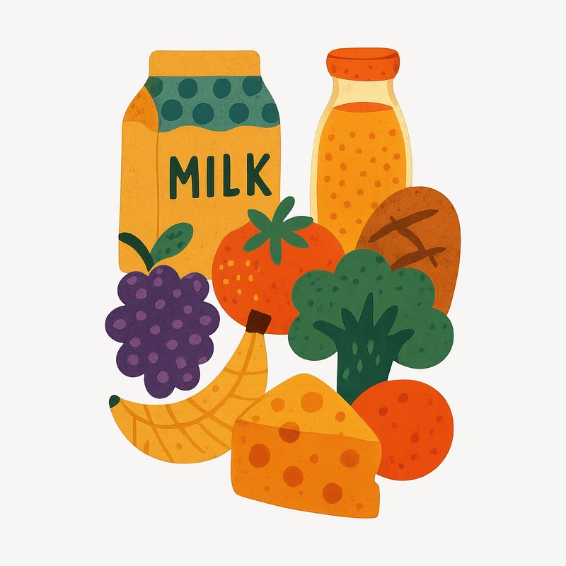 Colorful illustration of healthy foods. https://www.rawpixel.com/image/19674003/colorful-illustration-healthy-foodsView license