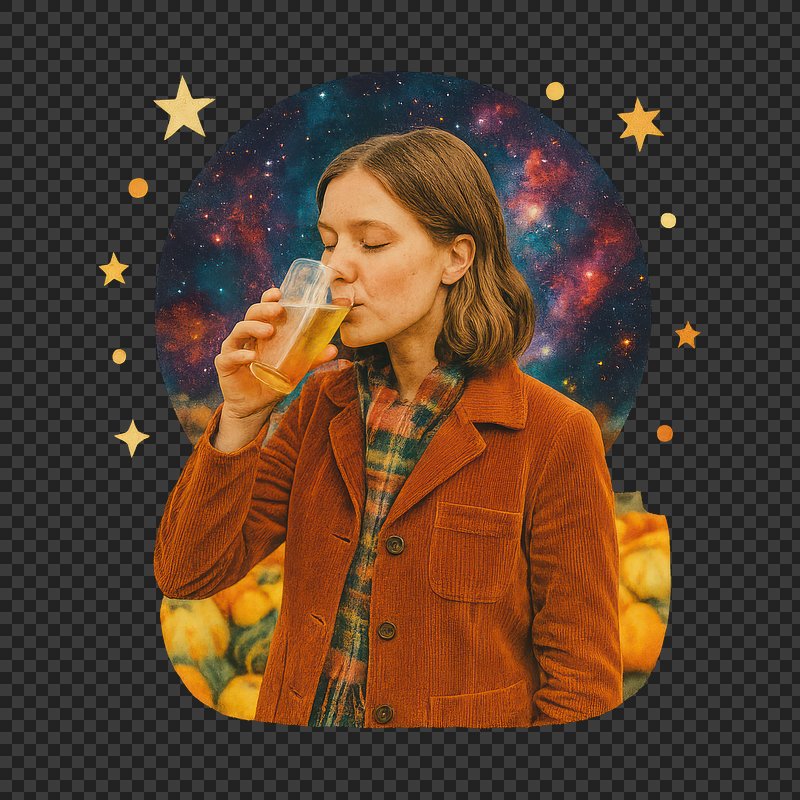 PNG Woman drinking amidst cosmic pumpkins. https://www.rawpixel.com/image/24267902/png-woman-drinking-amidst-cosmic-pumpkinsView license