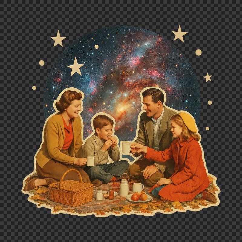 PNG Vintage family picnic under stars. https://www.rawpixel.com/image/24267953/png-vintage-family-picnic-under-starsView license