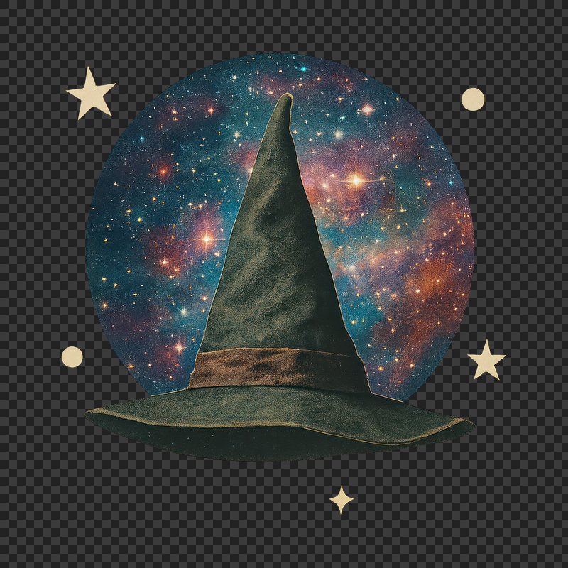 PNG Mystical hat with cosmic background. https://www.rawpixel.com/image/24268767/png-mystical-hat-with-cosmic-backgroundView license