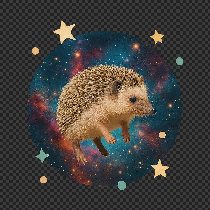 PNG Hedgehog floating in cosmic space. https://www.rawpixel.com/image/24270062/png-hedgehog-floating-cosmic-spaceView license