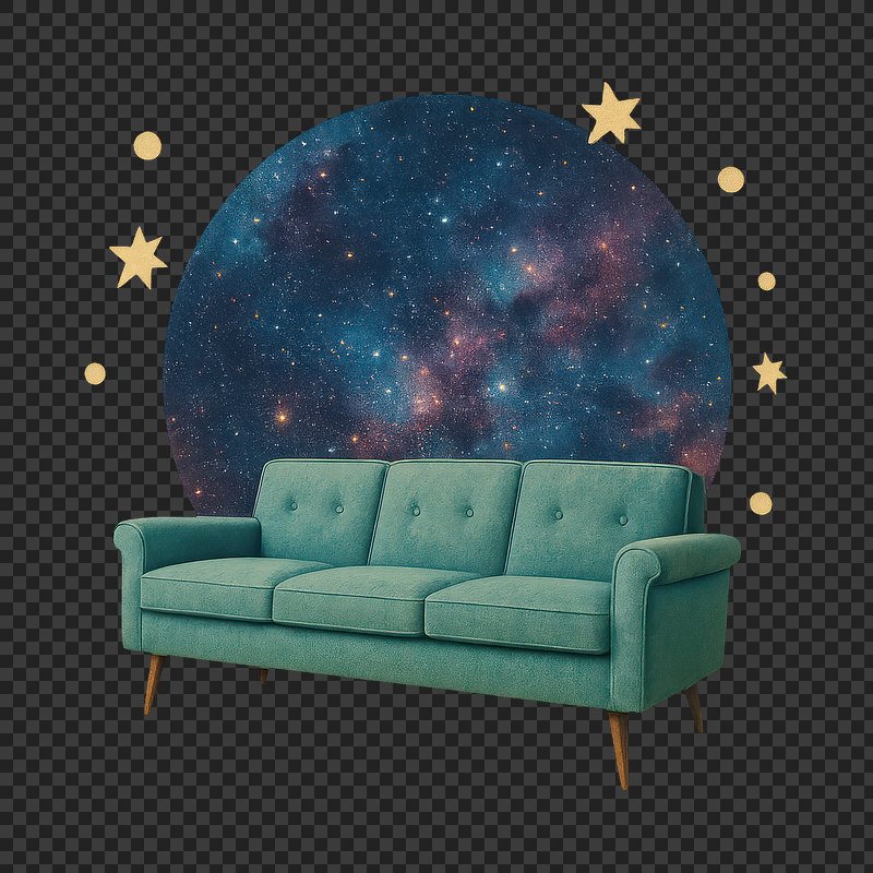 PNG Retro sofa with cosmic backdrop. https://www.rawpixel.com/image/24270302/png-retro-sofa-with-cosmic-backdropView license