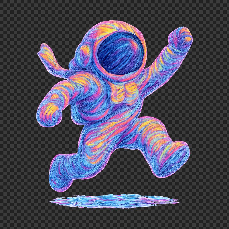 PNG Colorful astronaut leaping joyfully. https://www.rawpixel.com/image/24976428/png-colorful-astronaut-leaping-joyfullyView license