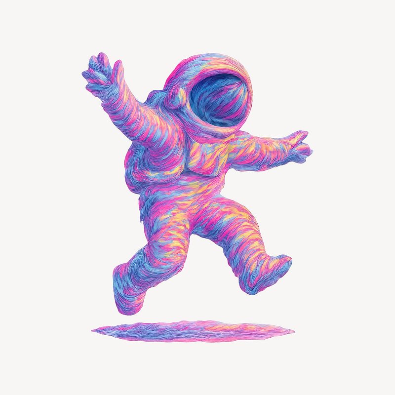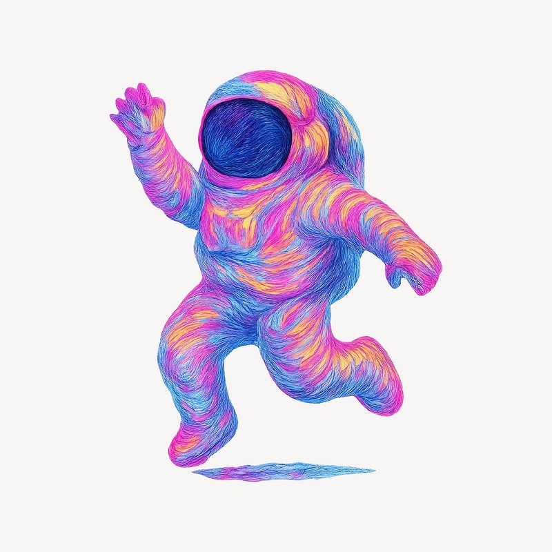 Colorful astronaut floating joyfully. https://www.rawpixel.com/image/25044315/colorful-astronaut-floating-joyfullyView license