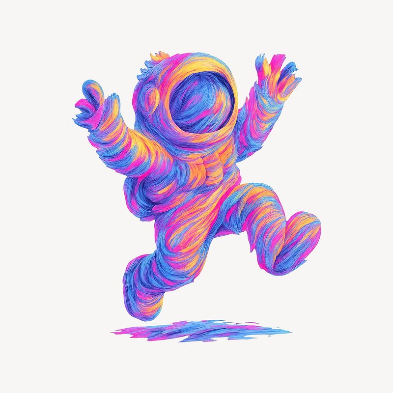 Colorful astronaut leaping joyfully. https://www.rawpixel.com/image/25044781/colorful-astronaut-leaping-joyfullyView license