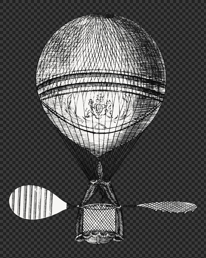 Hot air balloon png, vintage illustration by Vincent Lunardi, transparent background. Remixed by rawpixel. https://www.rawpixel.com/image/9638151/png-art-vintageView license
