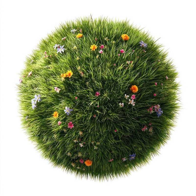 Spherical grass planet with flowers. https://www.rawpixel.com/image/24957101/spherical-grass-planet-with-flowersView license