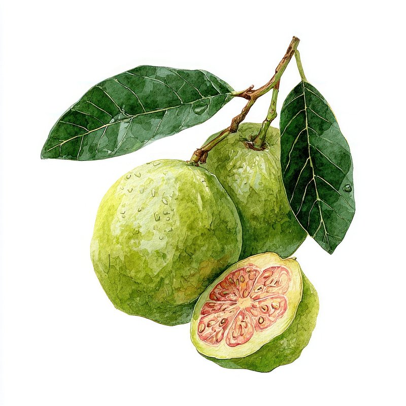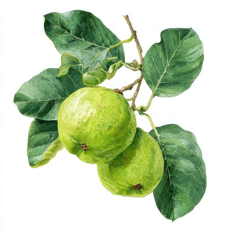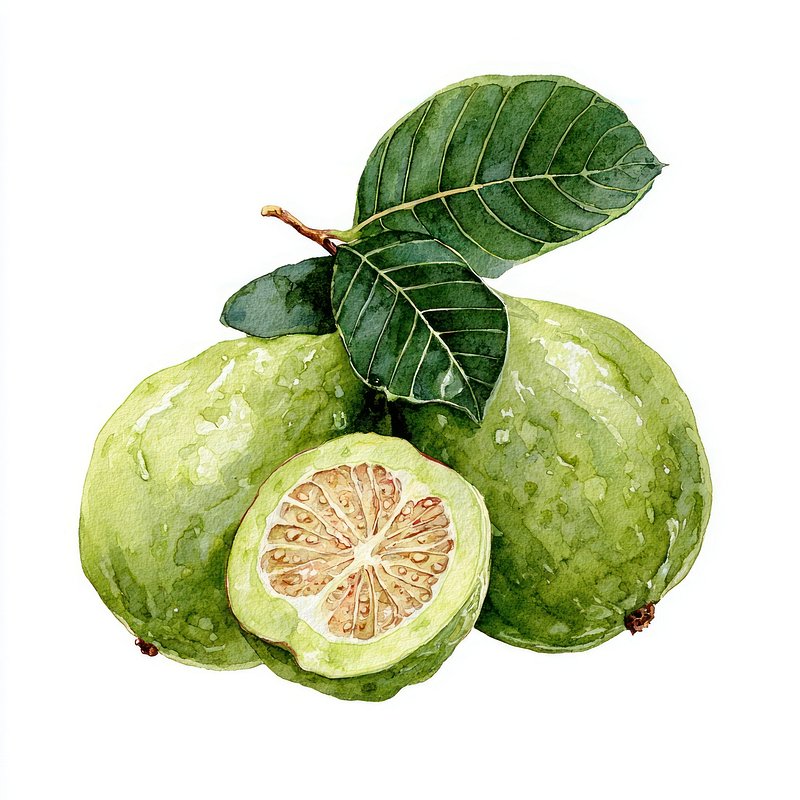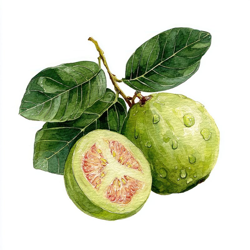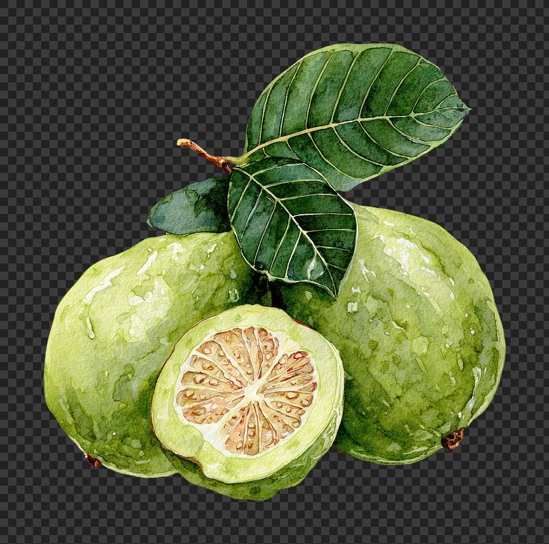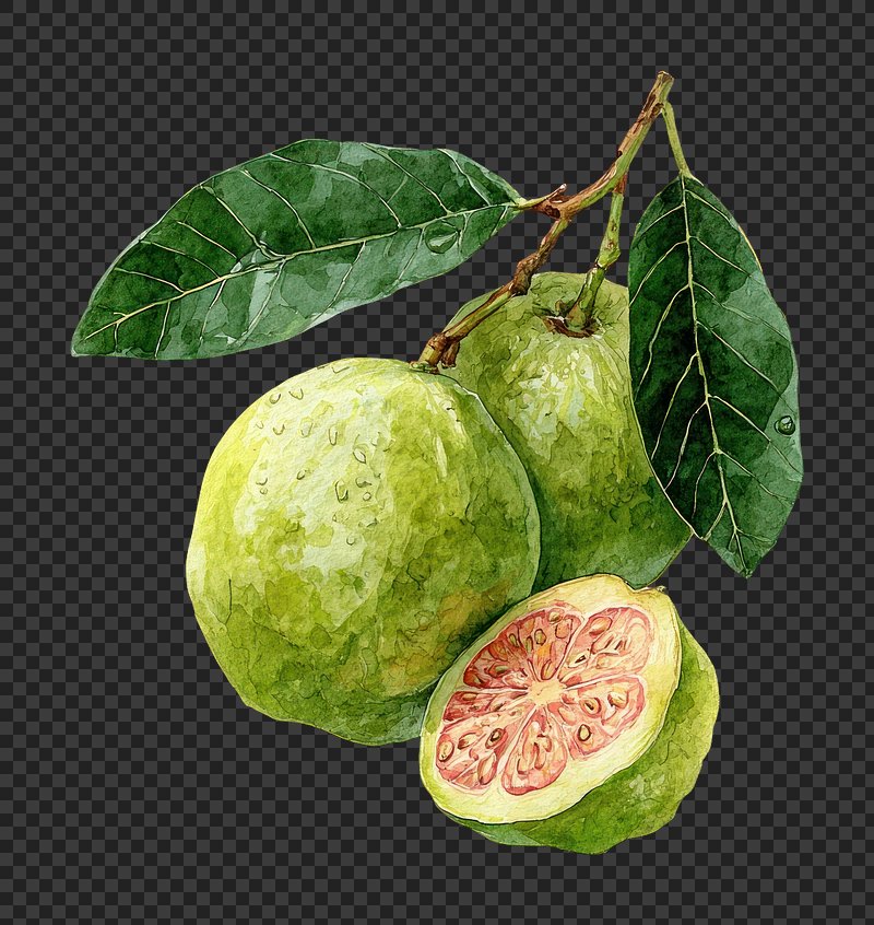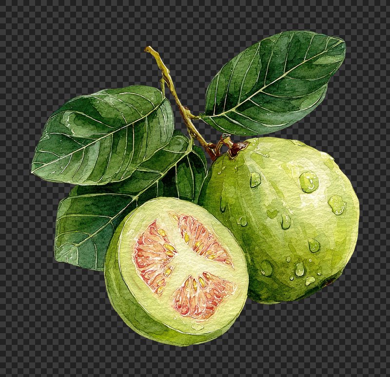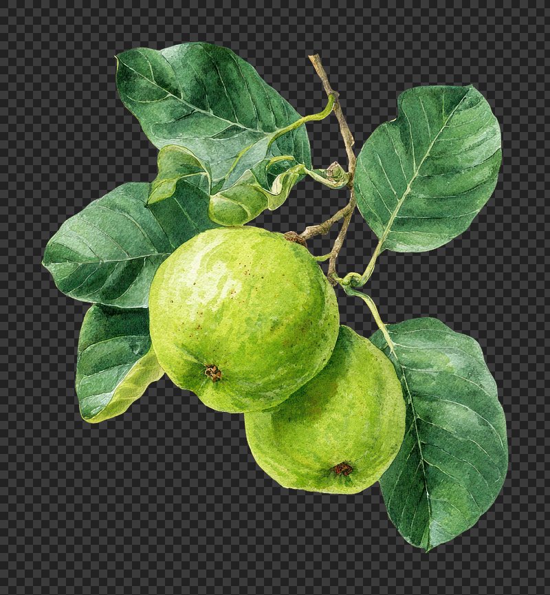 Watercolor guava illustration with leaves. https://www.rawpixel.com/image/25281593/watercolor-guava-illustration-with-leavesView license
