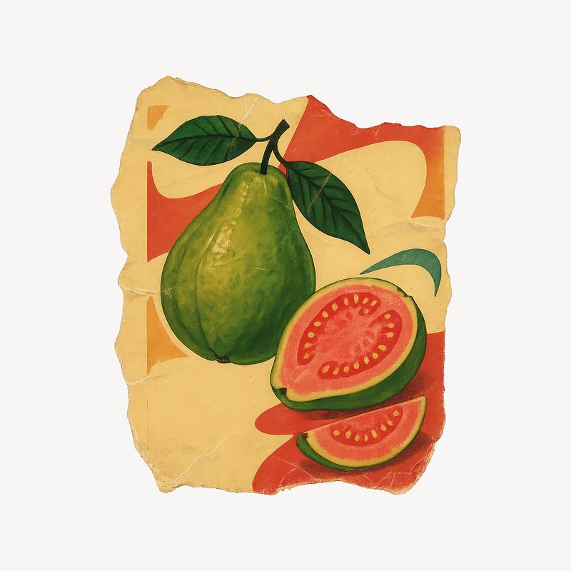Retro guava fruit illustration design. https://www.rawpixel.com/image/24653326/retro-guava-fruit-illustration-designView license