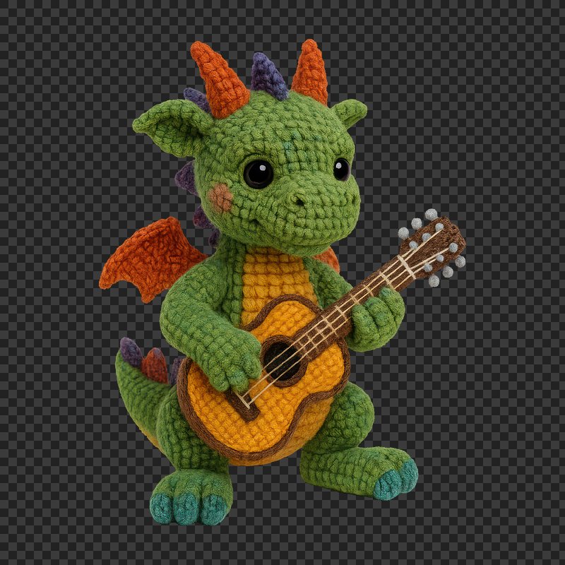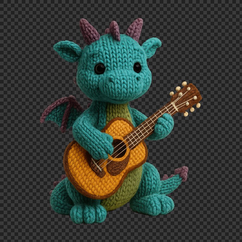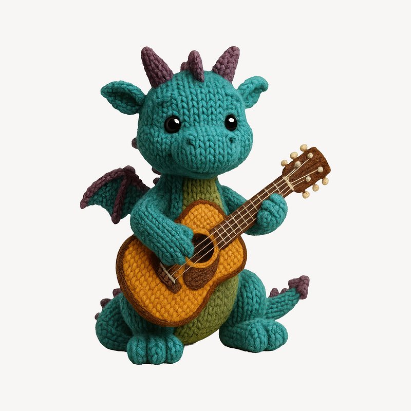 PNG Crocheted dragon playing guitar https://www.rawpixel.com/image/24439701/png-crocheted-dragon-playing-guitarView license