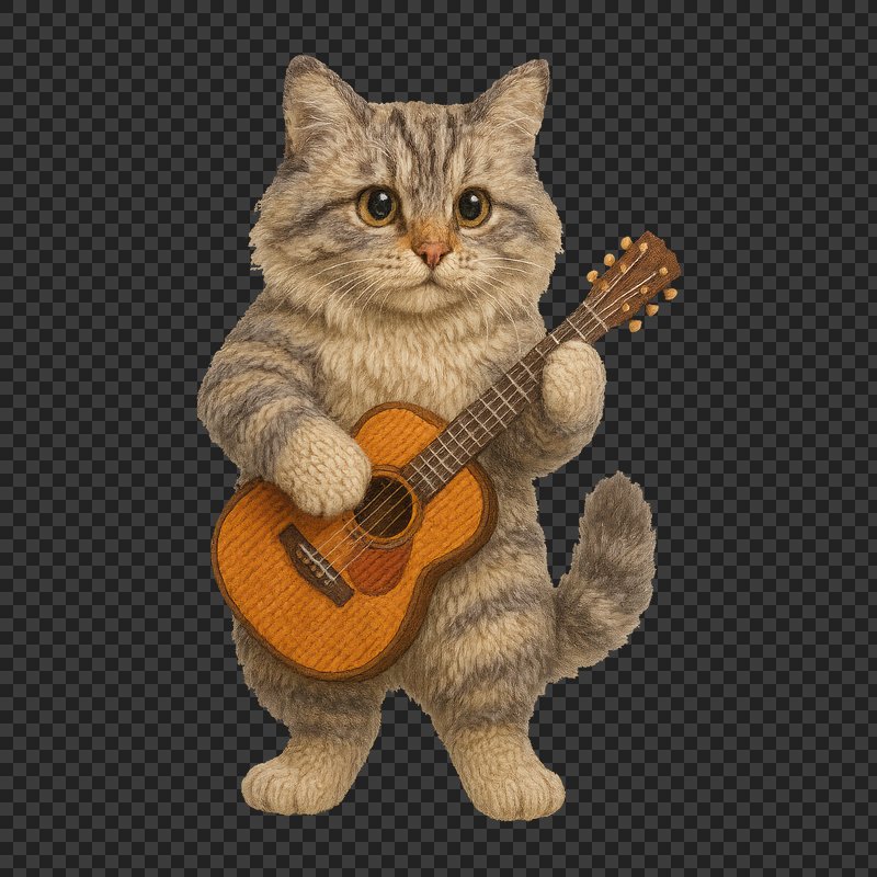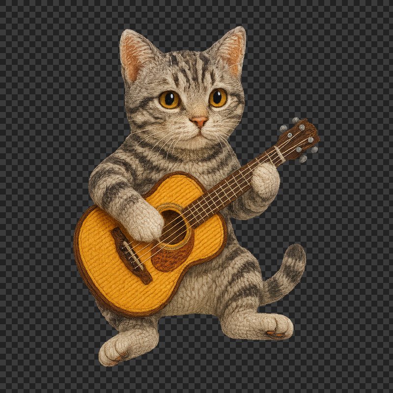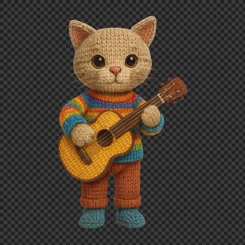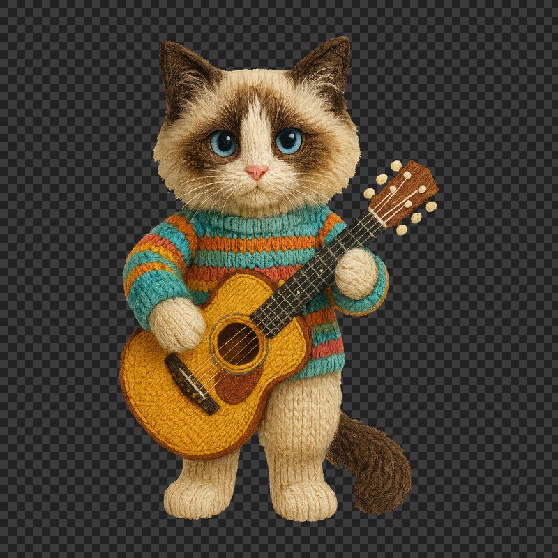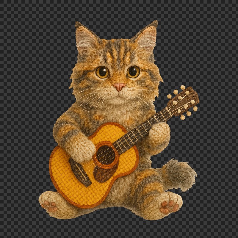 PNG Knitted cat playing guitar. https://www.rawpixel.com/image/24444837/png-knitted-cat-playing-guitarView license