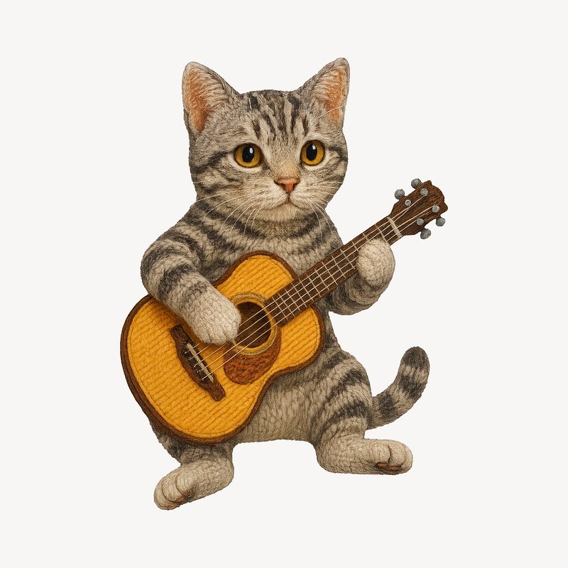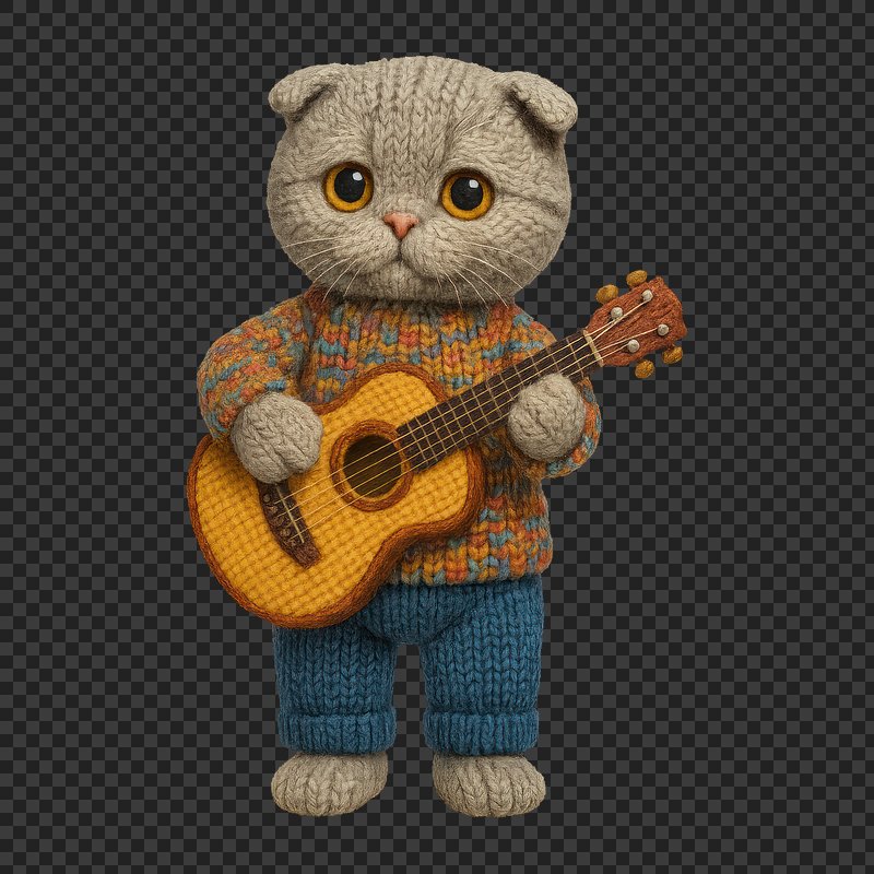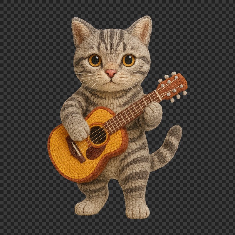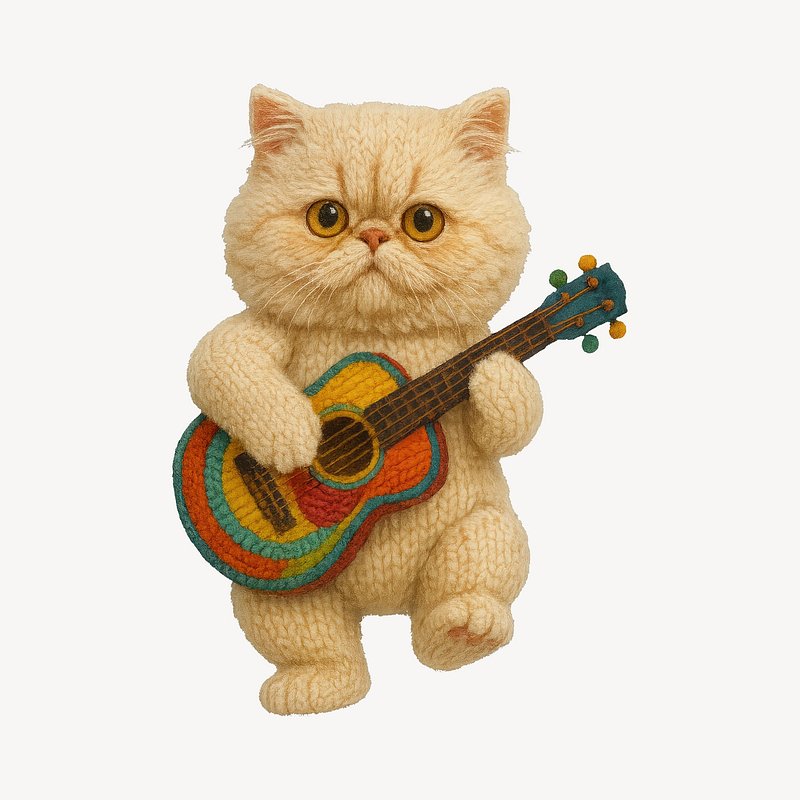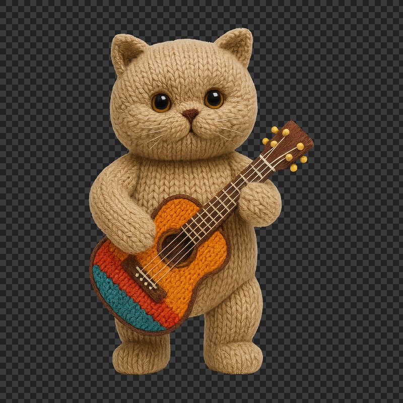 PNG Knitted cat playing guitar https://www.rawpixel.com/image/24523988/png-knitted-cat-playing-guitarView license