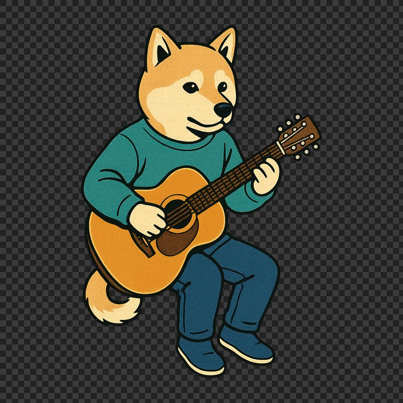 PNG Cartoon dog playing guitar. https://www.rawpixel.com/image/24667786/png-cartoon-dog-playing-guitarView license