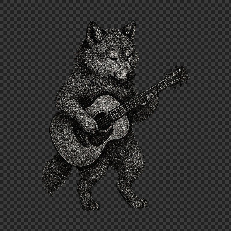PNG Wolf playing acoustic guitar illustration. https://www.rawpixel.com/image/24735078/png-wolf-playing-acoustic-guitar-illustrationView license