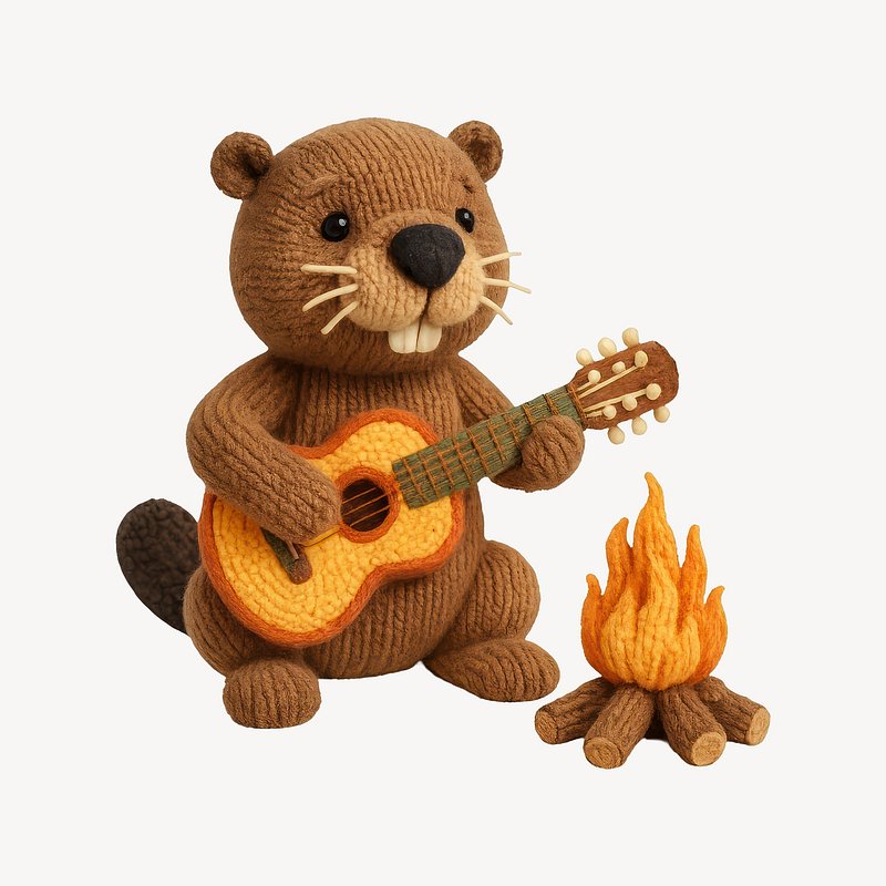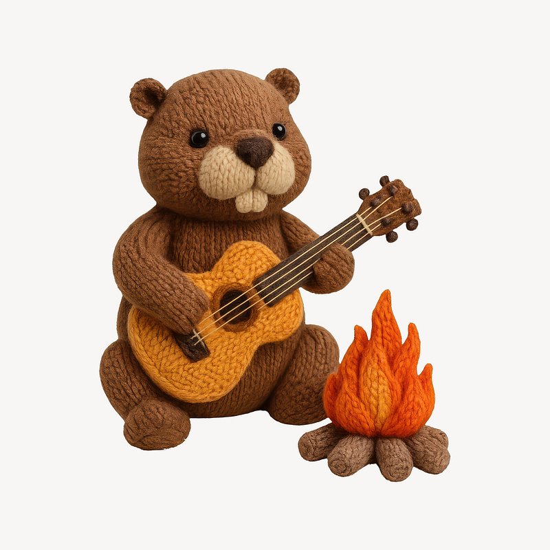Knitted beaver playing guitar campfire https://www.rawpixel.com/image/24530691/knitted-beaver-playing-guitar-campfireView license