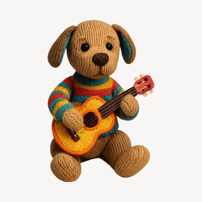 Knitted dog playing guitar https://www.rawpixel.com/image/24531273/knitted-dog-playing-guitarView license
