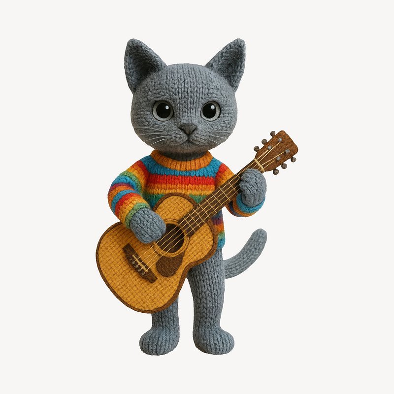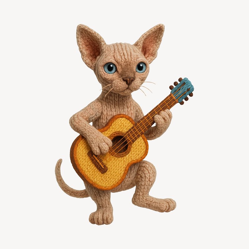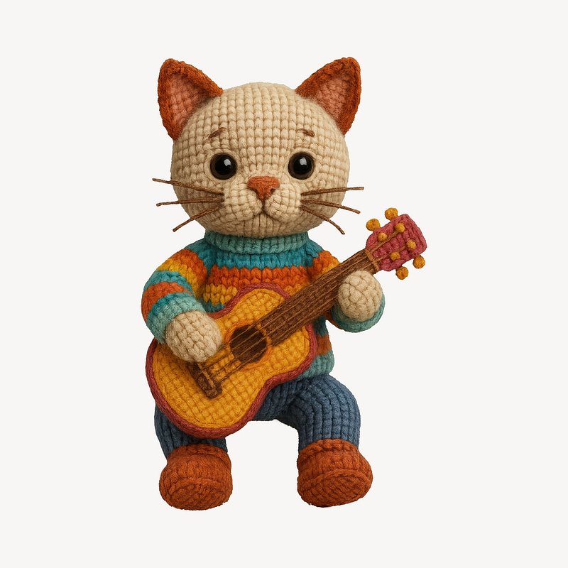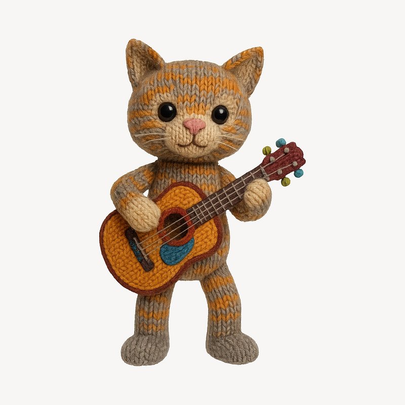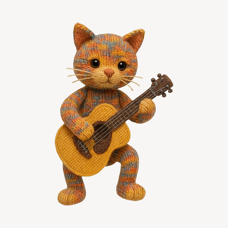 Knitted cat playing guitar. https://www.rawpixel.com/image/24533142/knitted-cat-playing-guitarView license