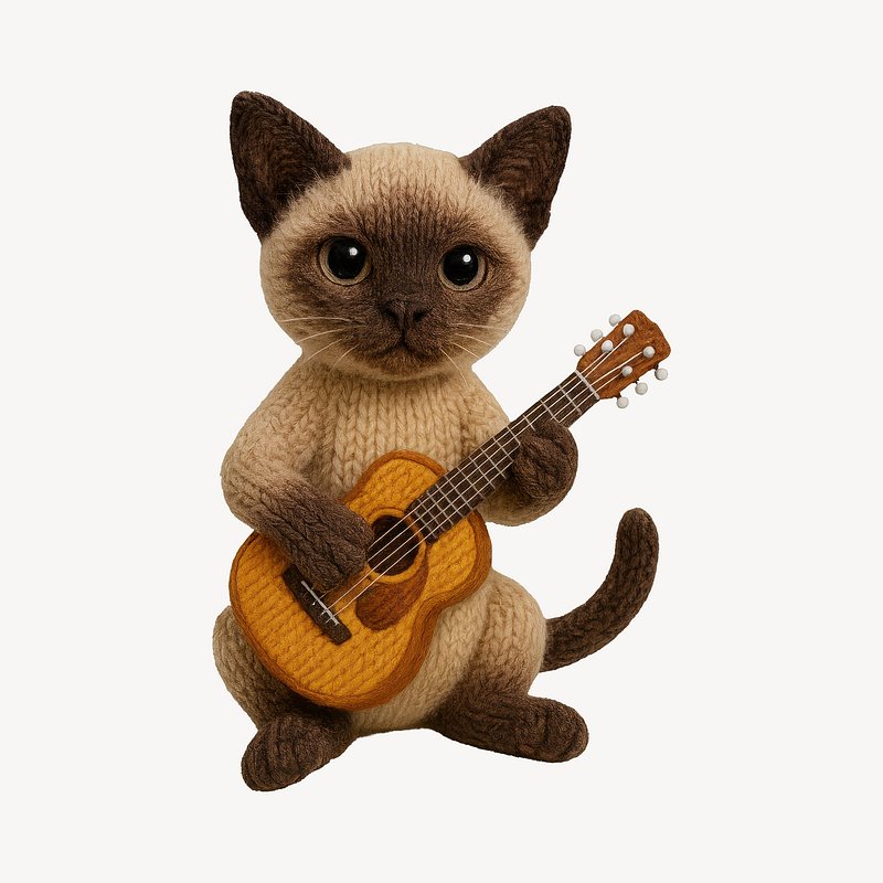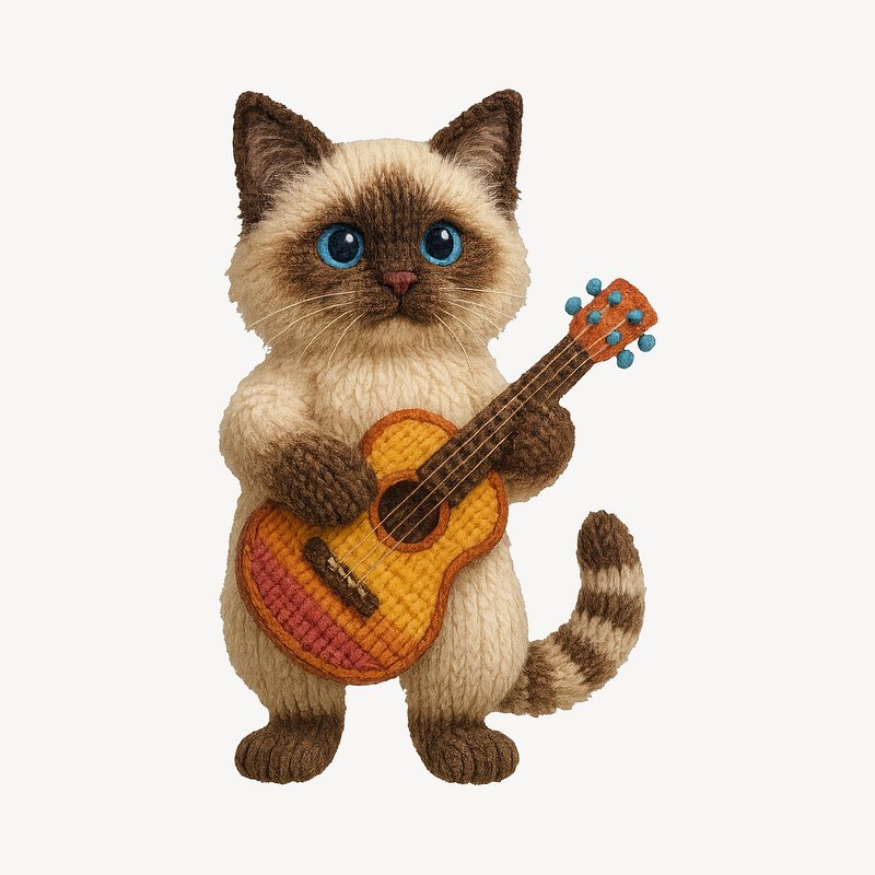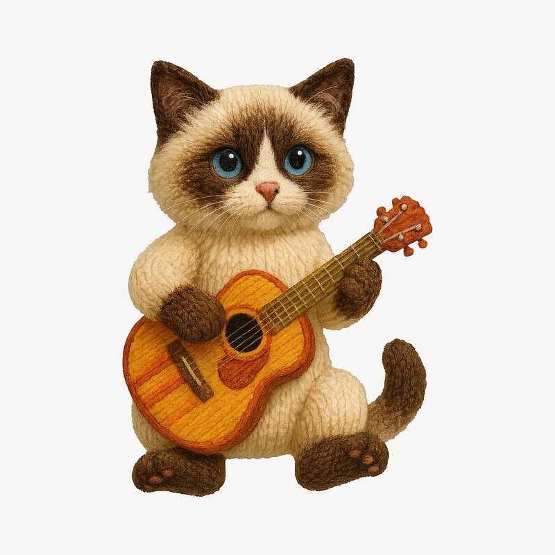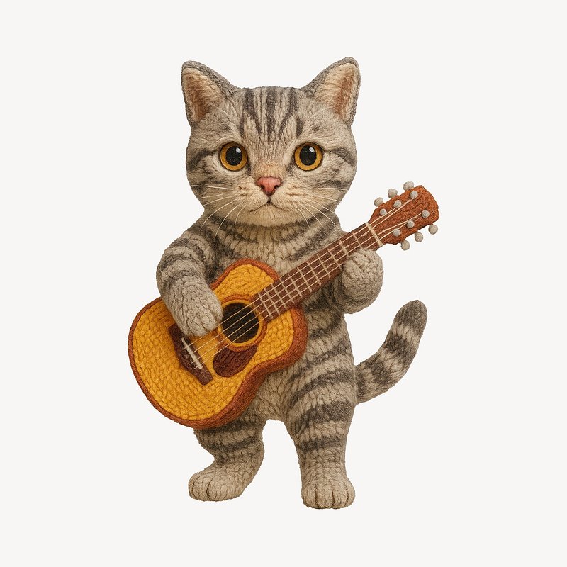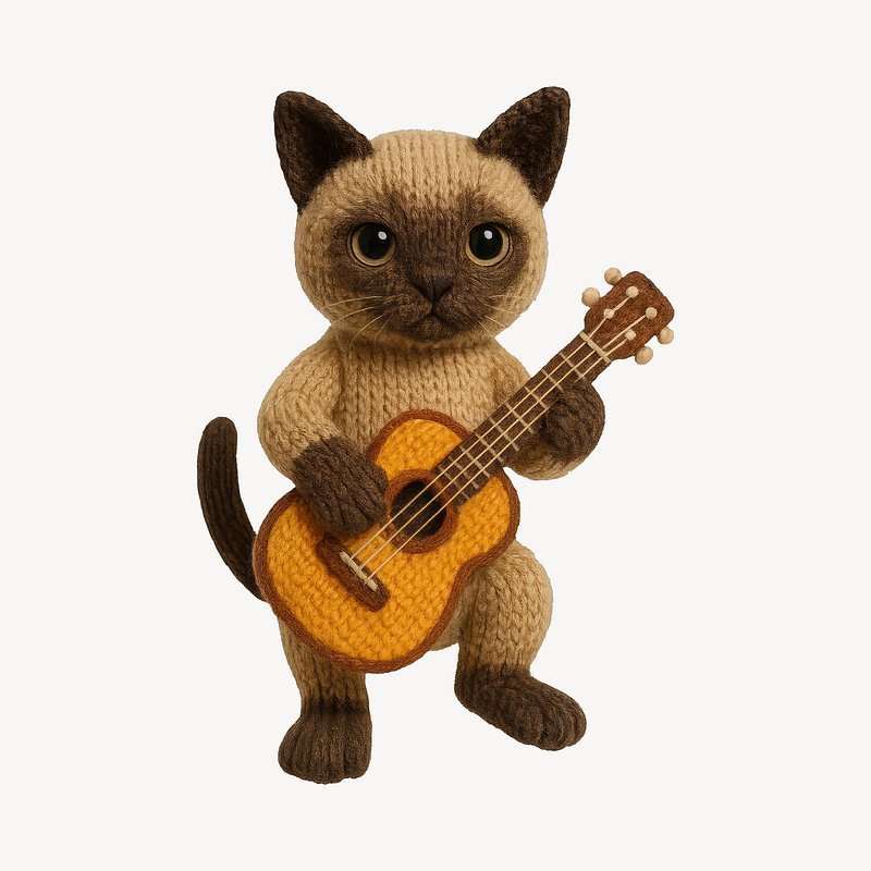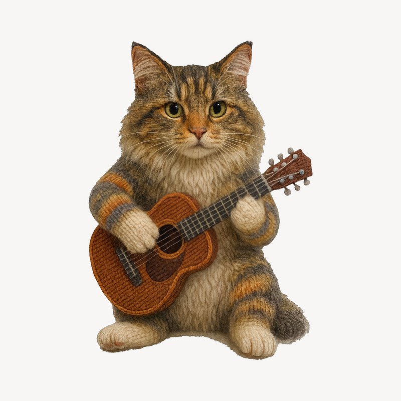 Knitted cat playing guitar. https://www.rawpixel.com/image/24533142/knitted-cat-playing-guitarView license