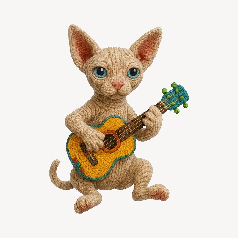 Knitted cat playing guitar https://www.rawpixel.com/image/24607176/knitted-cat-playing-guitarView license