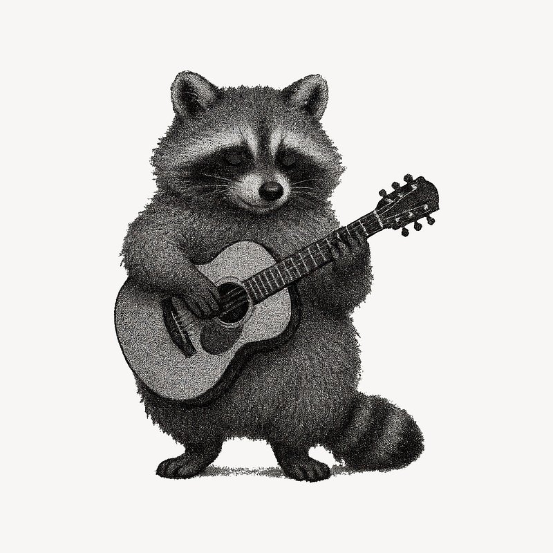 Raccoon playing acoustic guitar illustration. https://www.rawpixel.com/image/24766623/raccoon-playing-acoustic-guitar-illustrationView license