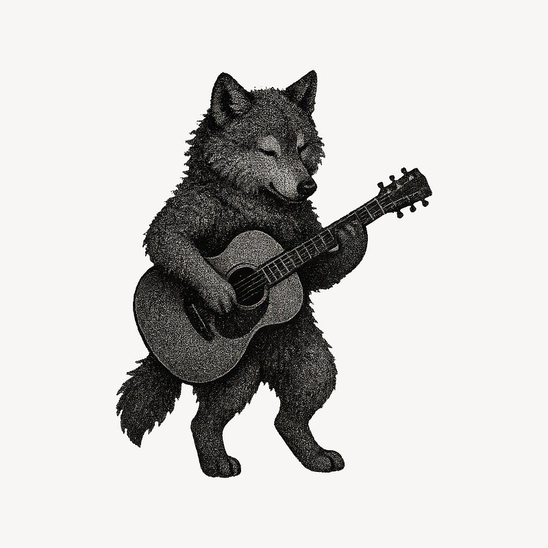 Wolf playing acoustic guitar illustration. https://www.rawpixel.com/image/24768349/wolf-playing-acoustic-guitar-illustrationView license