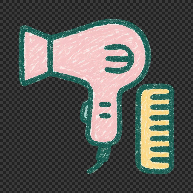PNG Chalk-style hairdryer and comb illustration. https://www.rawpixel.com/image/20798621/png-chalk-style-hairdryer-and-comb-illustrationView license