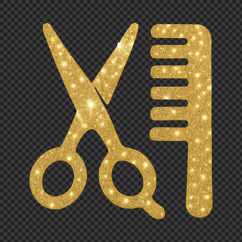 PNG Golden glitter scissors comb icon. https://www.rawpixel.com/image/22152624/png-golden-glitter-scissors-comb-iconView license