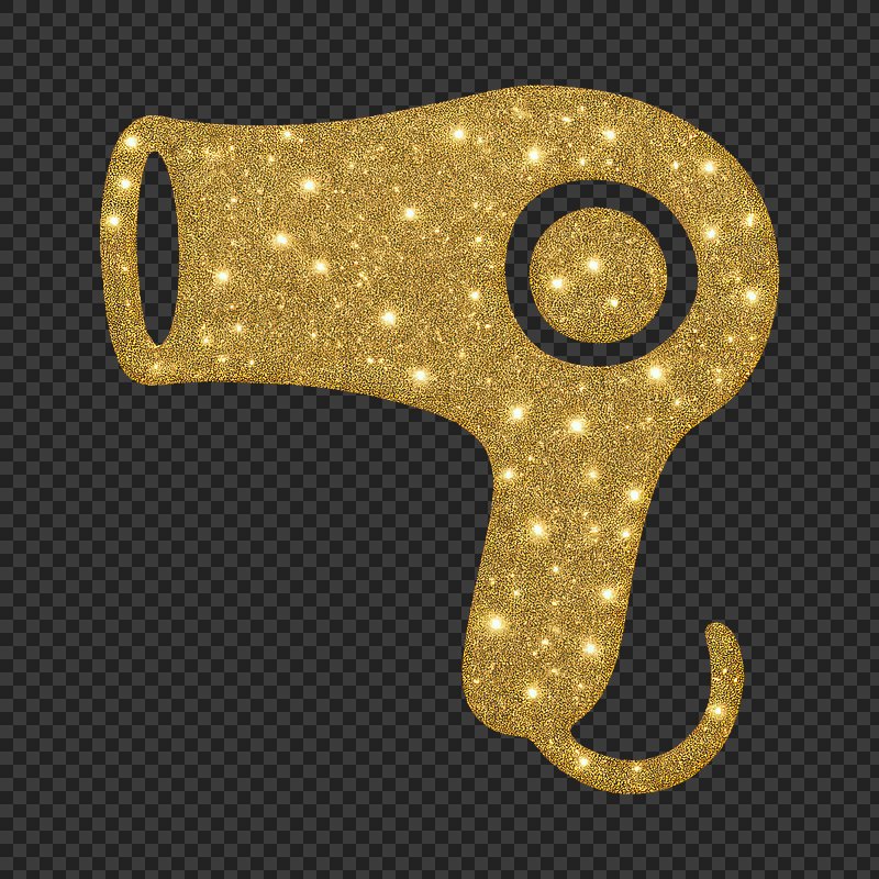 PNG Glittery golden hairdryer illustration. https://www.rawpixel.com/image/22152943/png-glittery-golden-hairdryer-illustrationView license