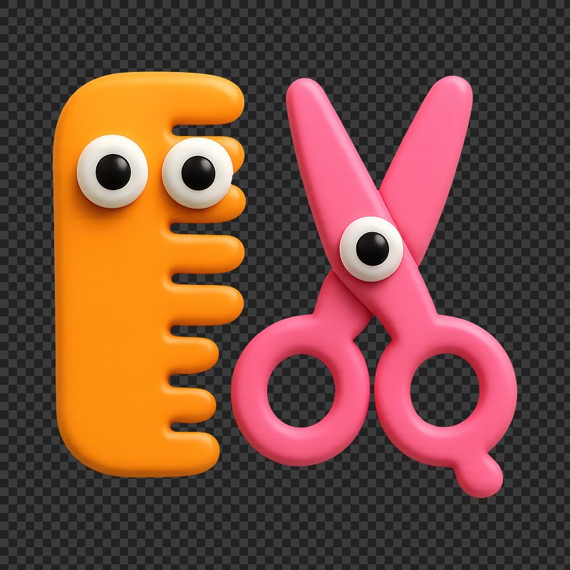 PNG Playful cartoon comb scissors https://www.rawpixel.com/image/22780543/png-playful-cartoon-comb-scissorsView license