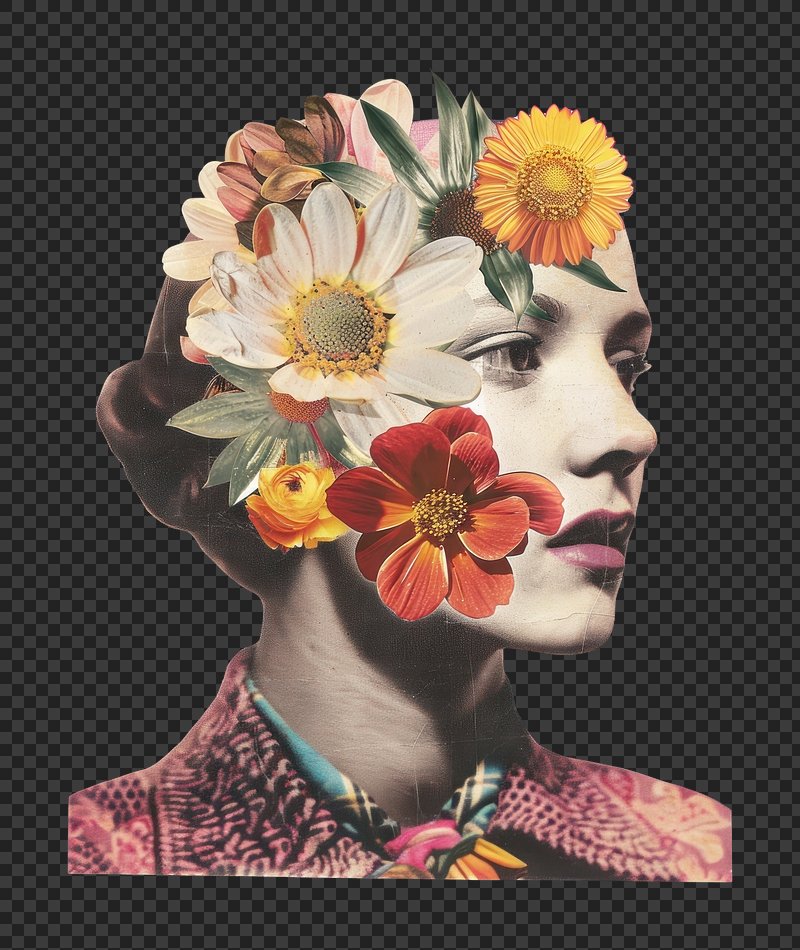 PNG Floral head collage art https://www.rawpixel.com/image/25244321/png-floral-head-collage-artView license